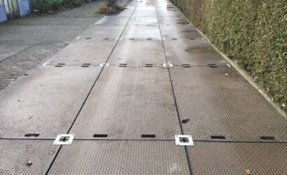Für ein optimales Ergebnis sollte der Untergrund möglichst eben sein, damit sich das Bodenschutzsystem vollständig verbinden lässt. Die Durchführung von Schläuchen und Kabeln unter den Platten ist allerdings nicht möglich – in diesem Fall stellen wir Ihnen gerne passende Kabelschutzbrücken zur Miete zur Verfügung.